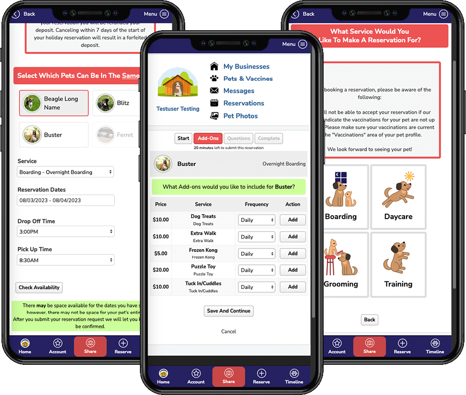 Personalize Paw Partner to your services, whether that’s different types of boarding, like home drop-in and luxury boarding, or various add-ons, like a bath, belly rub, or training session.
