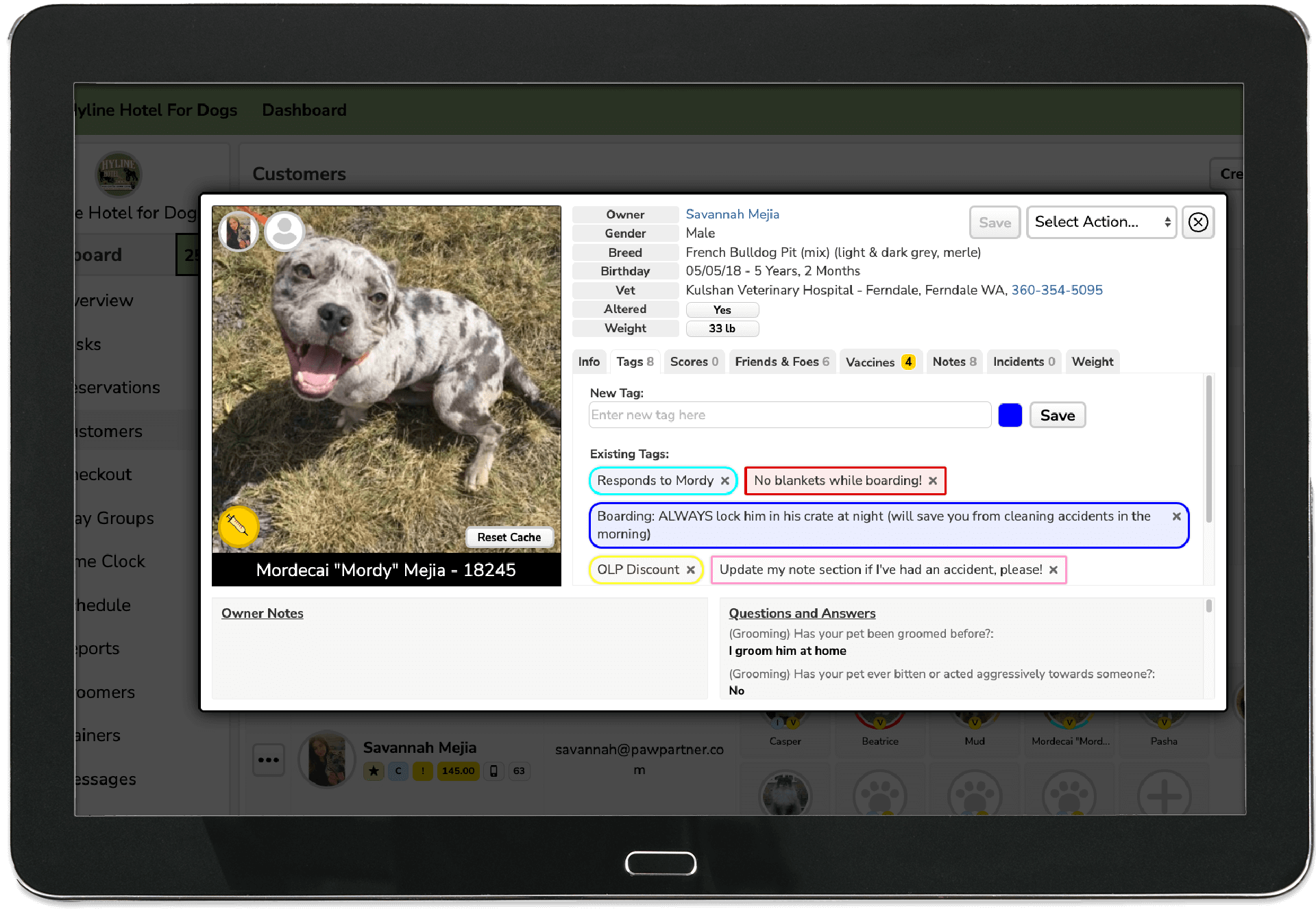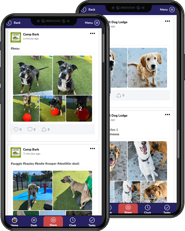 Our one-click photo sharing allows every employee to quickly upload, tag, and share pet photos. You can have those shared photos go directly to your customer or have a manager approve them easily before sharing with the customer! Then, clients automatically receive push notifications when they’re ready to view.